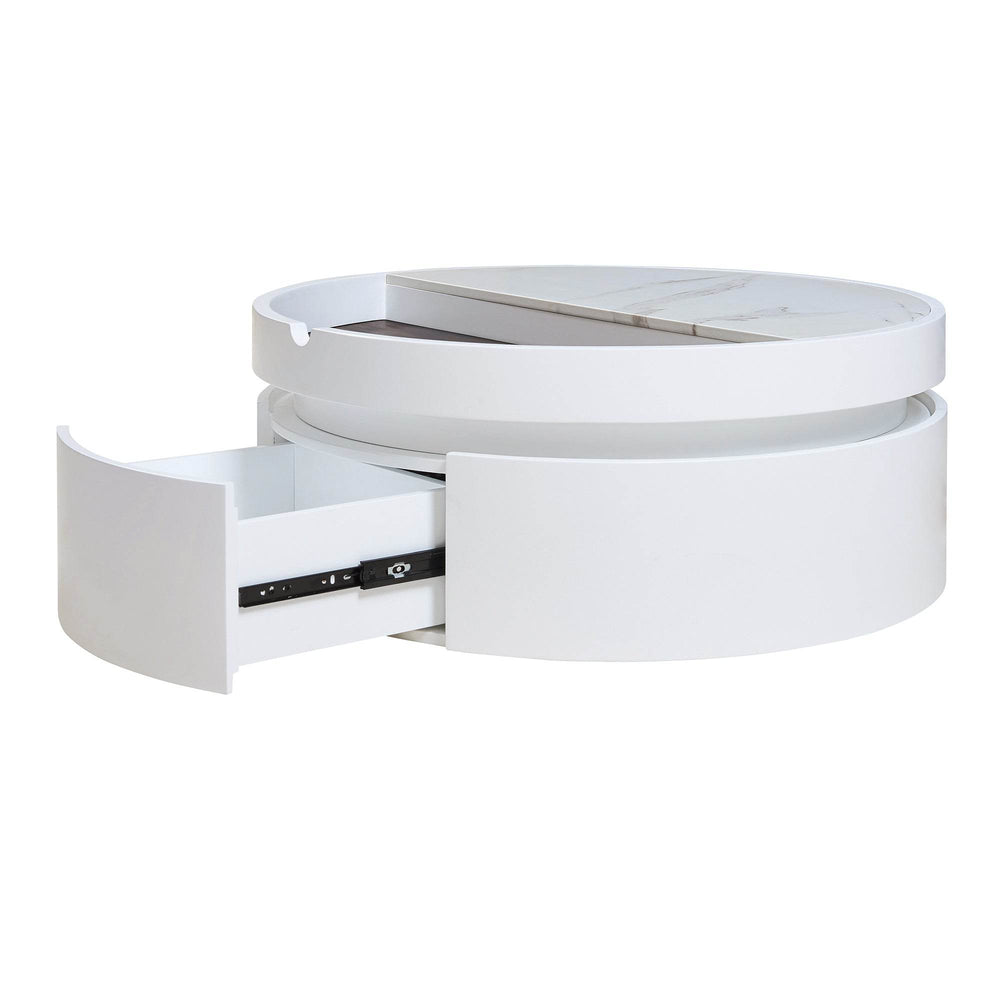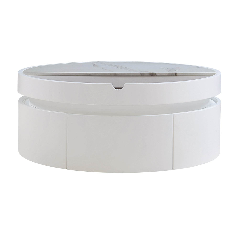 Modern White Walnut Round Lift-Top Coffee Table With Drawer