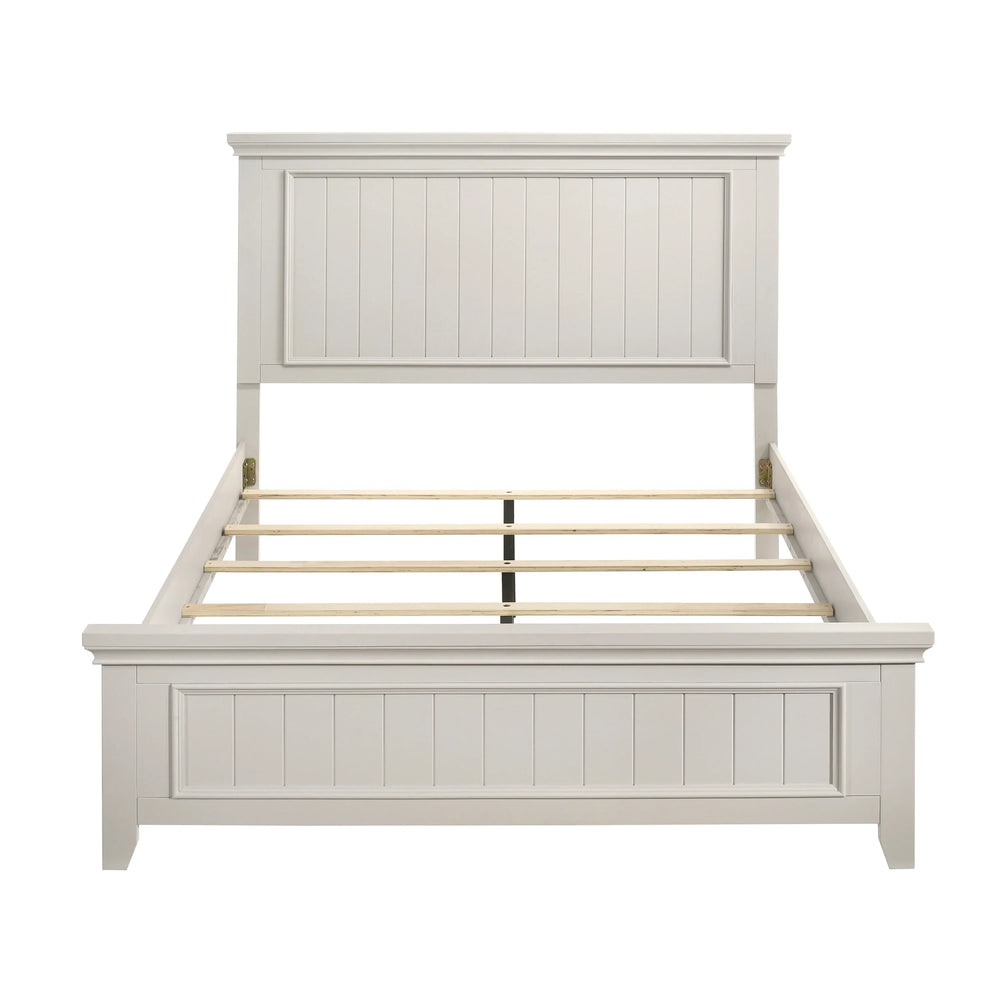 Queen Farmhouse White Wood Panel Bed Frame is backordered and will ship as soon as it is back in stock.