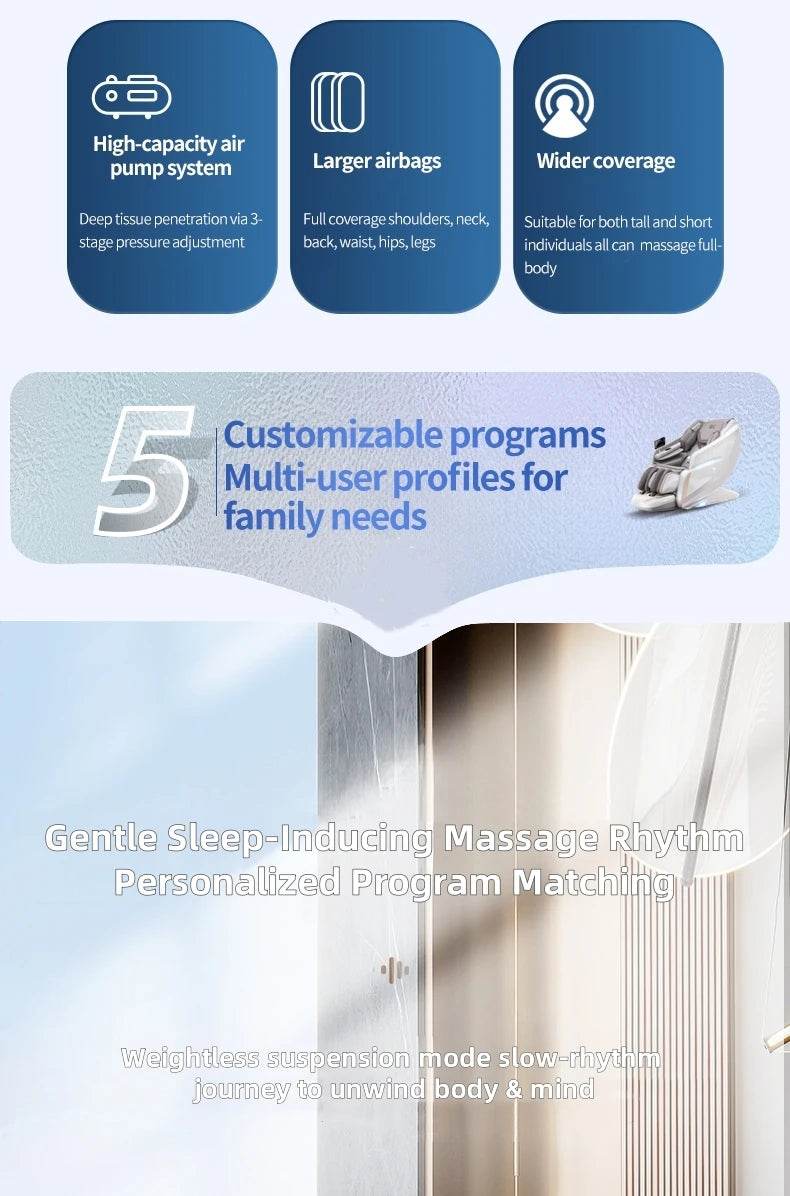 - 10 Custom Massage Programs: From deep tissue to Thai stretch and sleep aid modes.