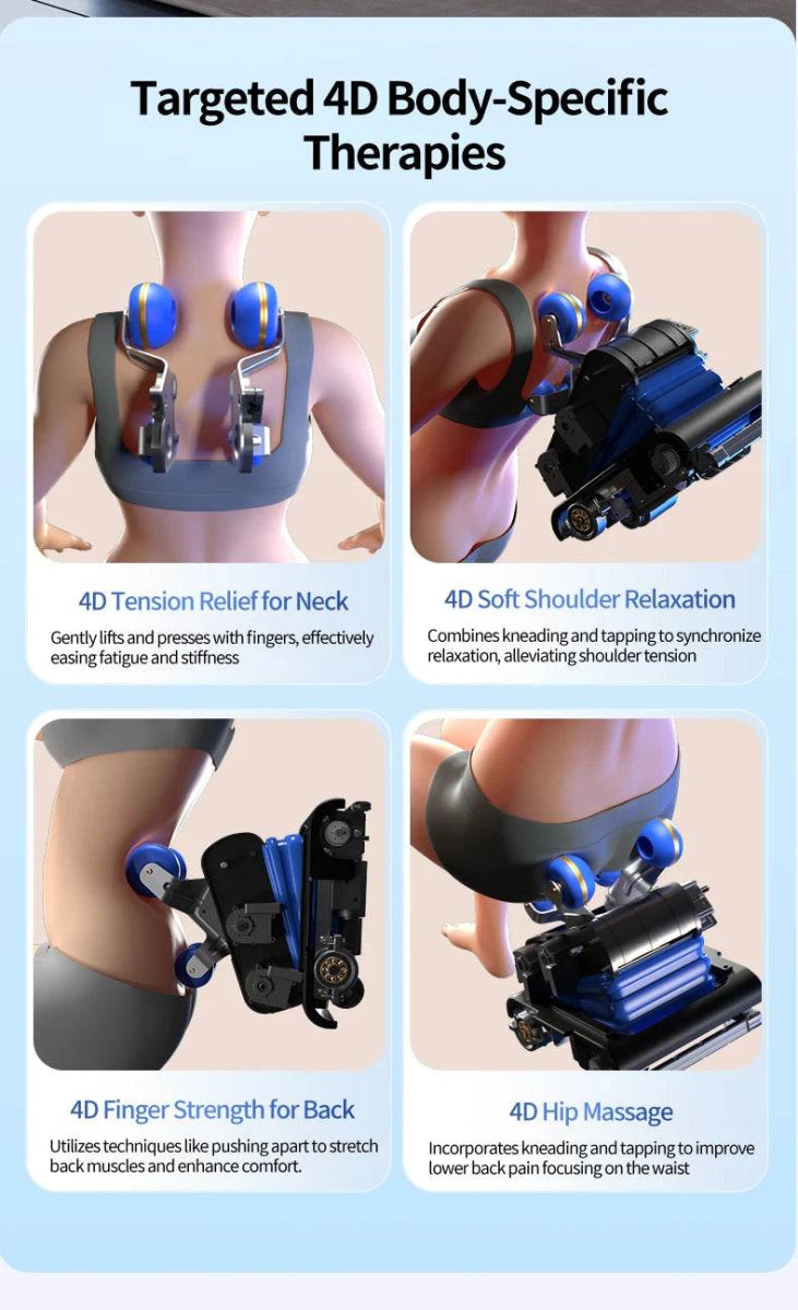 - 4D Precision Massage: Replicates human touch for accurate tension relief.