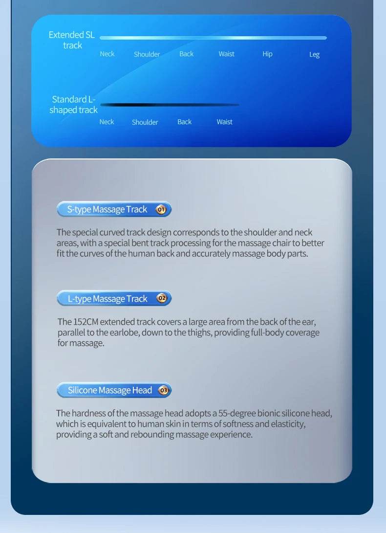 - 1520mm SL track targets seven key body zones for relief