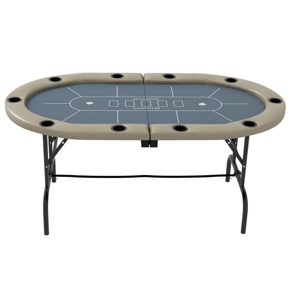 Folding Ten-Player Oval Poker Game Table With Cup Holders