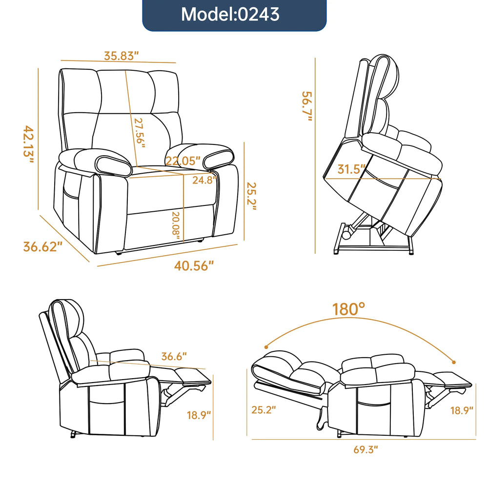 • Dual Motor Power Remote: Smoothly controls lift and recline to any position up to 180°