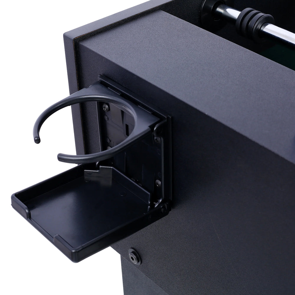 Designed for family game rooms and recreation spaces, the 54-Inch Hurricane Foosball Table delivers fast-paced, competitive fun with professional-grade features. Its sturdy MDF and steel construction ensures long-lasting durability, perfect for intense matches. The light cherry finish adds a touch of elegance, complementing any decor while the immersive, soccer-inspired playfield keeps players engaged in thrilling action. With ergonomic non-slip rubber handles and smooth, chrome-plated steel rods, you’ll experience precise ball control. The adjustable levelers on L-shaped legs guarantee steady gameplay on any floor surface. Included accessories like four soccer balls, two counters, and a cup holder make it a complete, ready-to-play game centerpiece. Elevate your family fun and game nights today with this space-efficient and stylish foosball table.