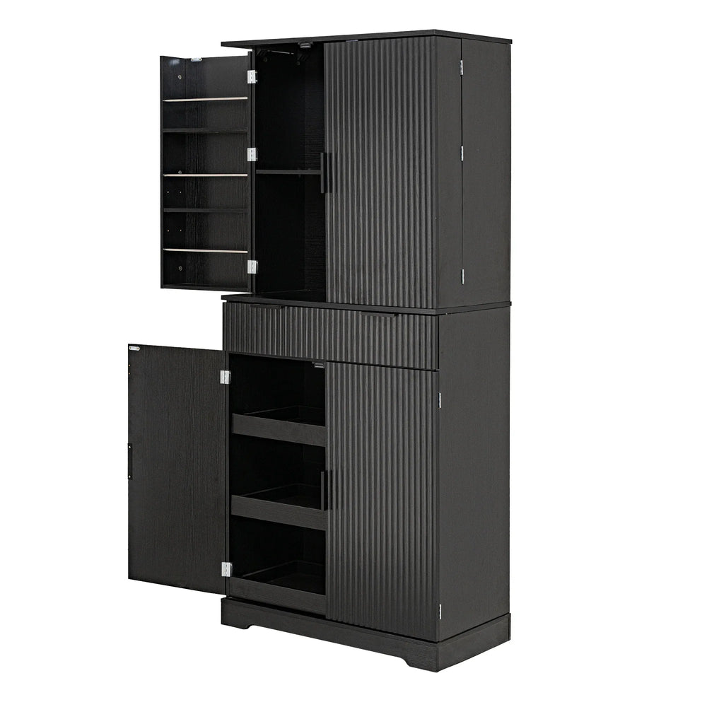 Maximize Your Storage with the Elegant 72-Inch Fluted Kitchen Pantry Cabinet
