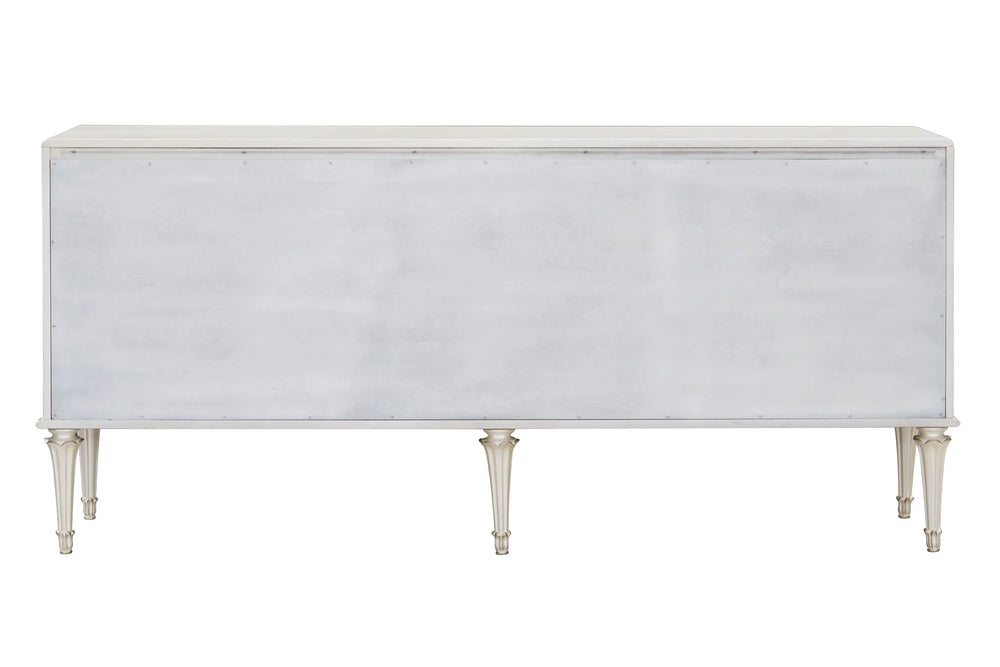 Elevate Your Living Space with the Ansaldo Pearl White & Silver Shimmer Console Cabinet