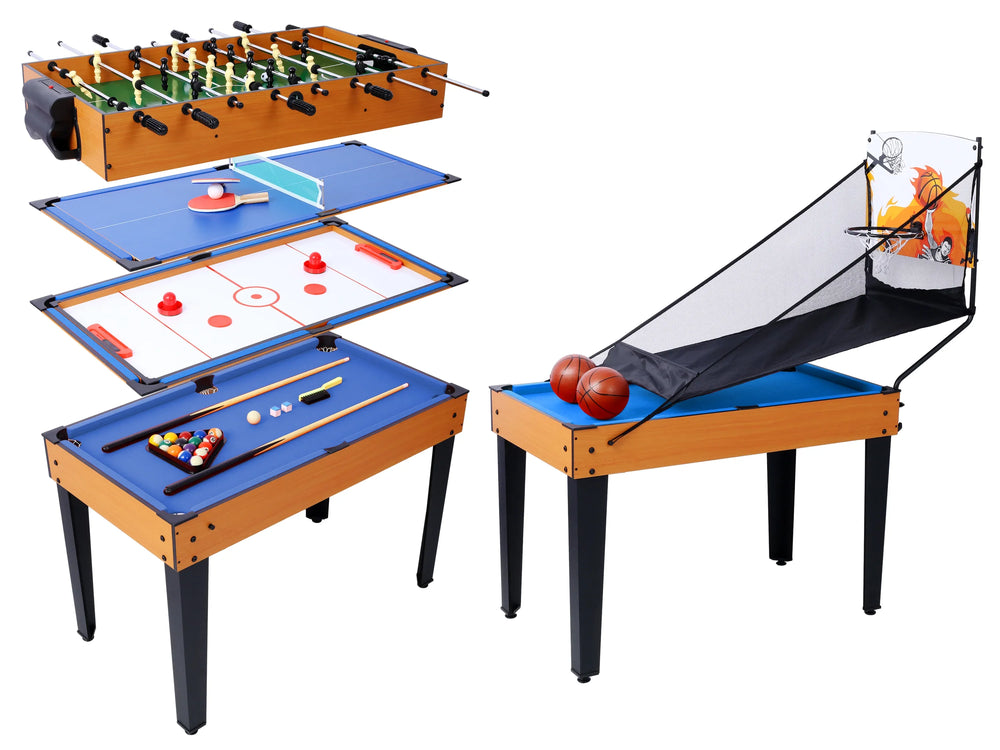 - Complete Accessory Set: Includes cue sticks, balls, paddles, pucks, basketballs with pump, and nets.