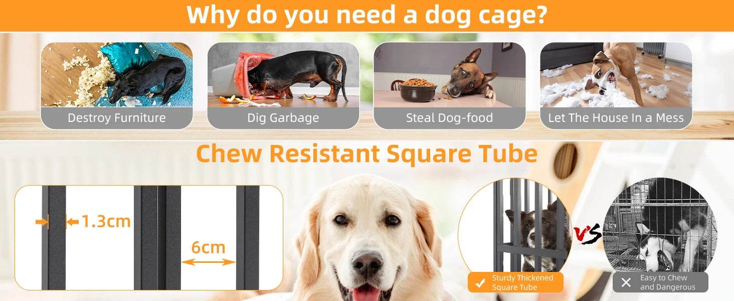 • Chew-Resistant Square Tube Construction: 0.6-inch thick iron square tubes resist biting and rust.
