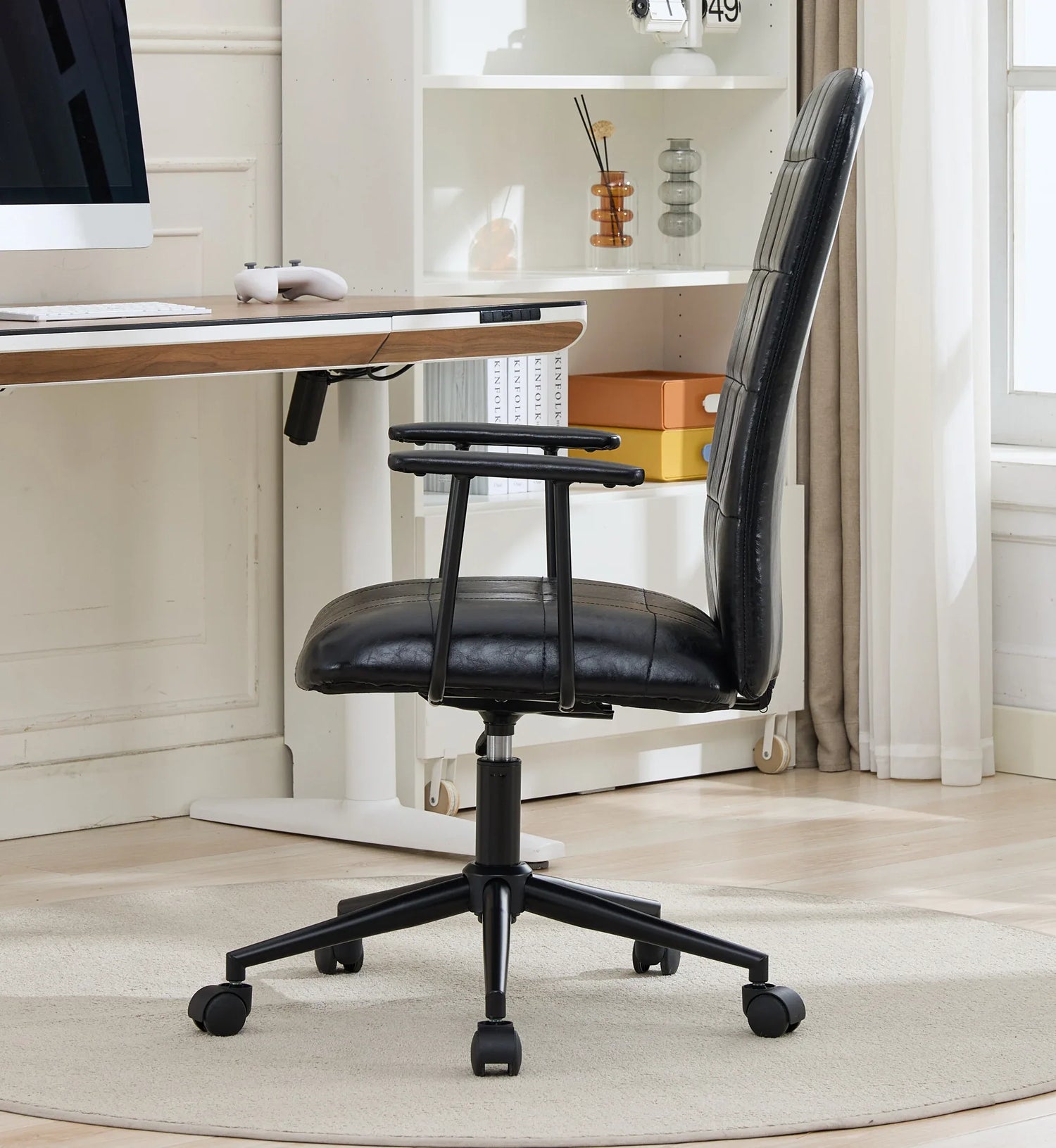 Antique Black PU Leather Adjustable Swivel Office Chair