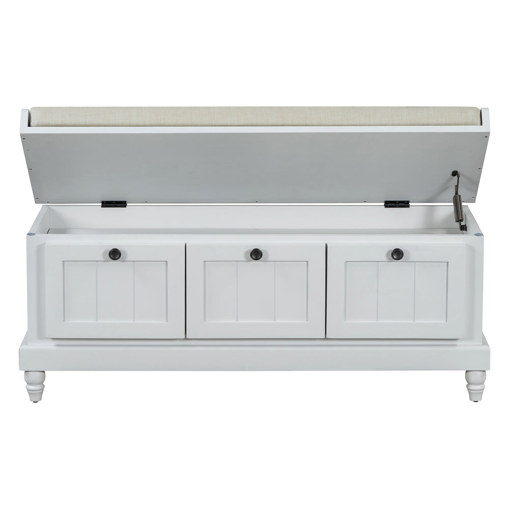 Classic Cushioned Shoe Bench With Three Drawers Storage