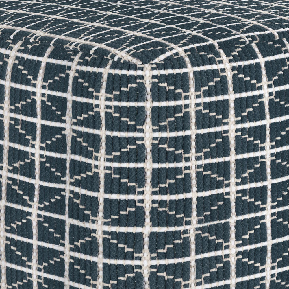 Elevate comfort and style in any room with the Noreen Square Pouf, featuring a hand-woven dark blue and white cotton upholstery that adds a touch of artisanal charm. Its dense polystyrene bead filling provides supportive cushioning that holds shape for long-lasting use. Perfectly sized at 18 inches square and 14 inches high, this versatile pouf serves as a footstool, extra seating, or an accent piece in your living room, family room, or bedroom. Fully assembled and lightweight at just under 5 pounds, it’s easy to move wherever you need a cozy spot or stylish addition. The breathable cotton fabric offers both durability and softness, making it a practical yet elegant choice. Refresh your home décor and add functional comfort effortlessly—make the Noreen Pouf part of your relaxation and seating solutions today.