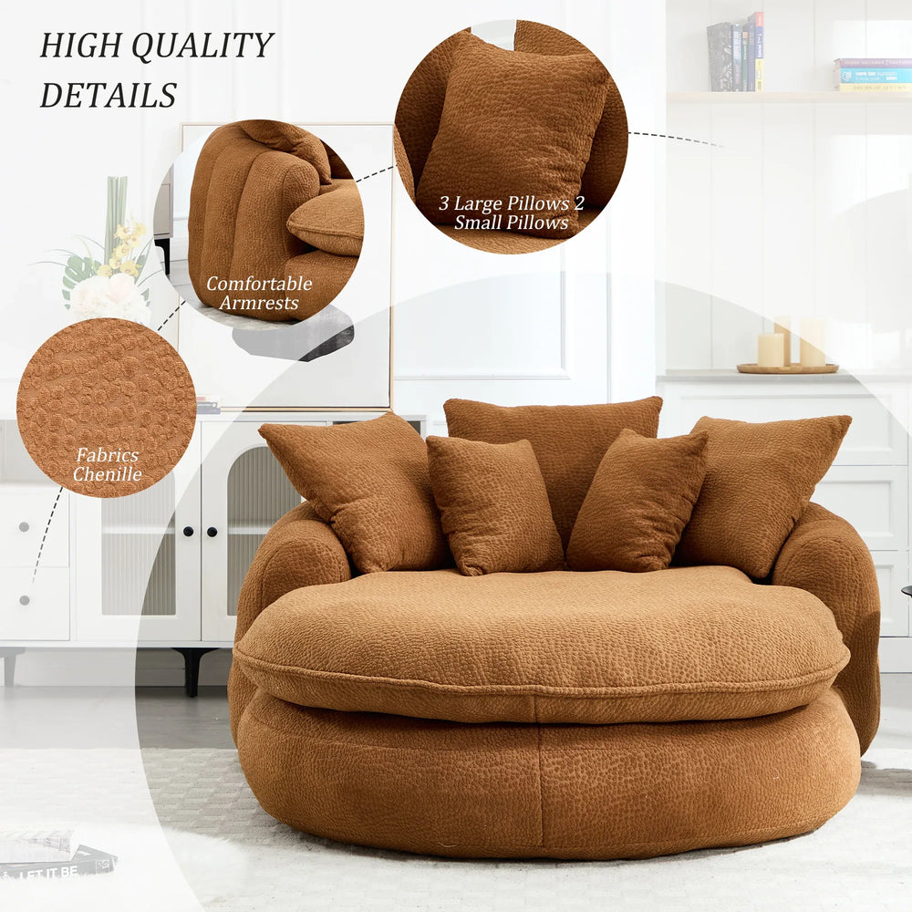 Oversized Chenille Memory Foam Bean Bag Sofa With Pillows