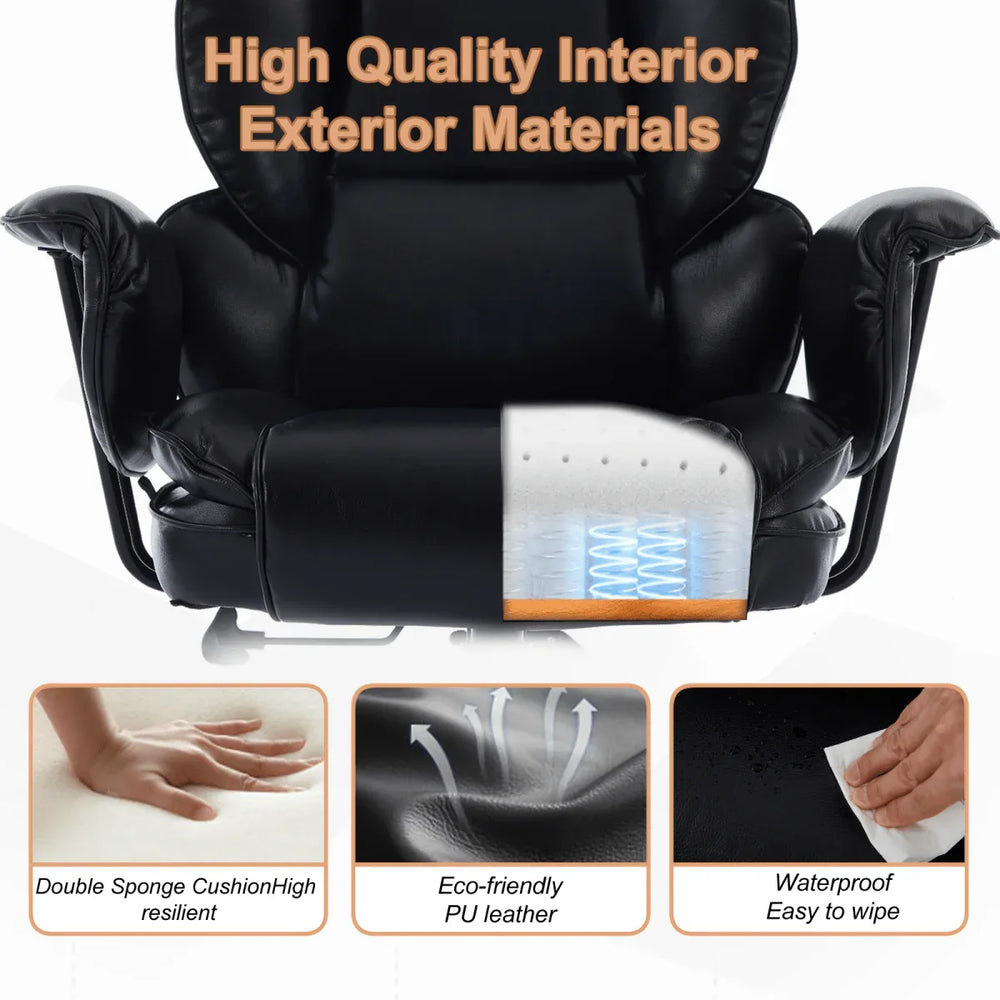 Designed specifically for heavy users, this high-back executive office chair delivers exceptional comfort and durability for long workdays. With a wide seat and plush dual-density foam cushioning, it conforms to your body’s natural curves to relieve pressure points and reduce fatigue. The adjustable lumbar support provides personalized spine alignment, promoting better posture whether you’re typing, gaming, or attending virtual meetings. Built with a reinforced steel frame and smooth-rolling casters, this chair supports up to 500 lbs, ensuring reliable stability and fluid mobility. Finished in sleek black leather with clamshell armrests, it adds professional style to any office space. Elevate your seating experience and power through your day with comfort you can count on.