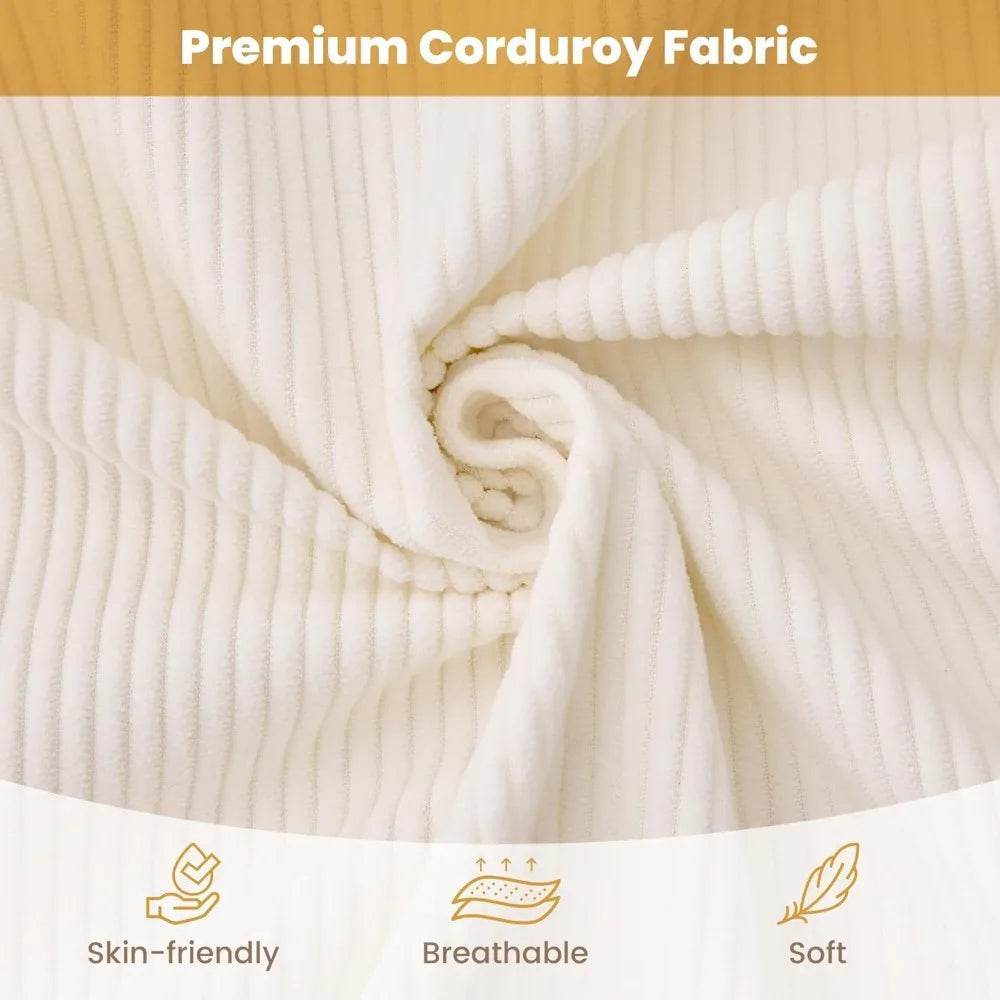 - Soft White Corduroy Upholstery: Durable and comfortable with a removable, machine-washable cover