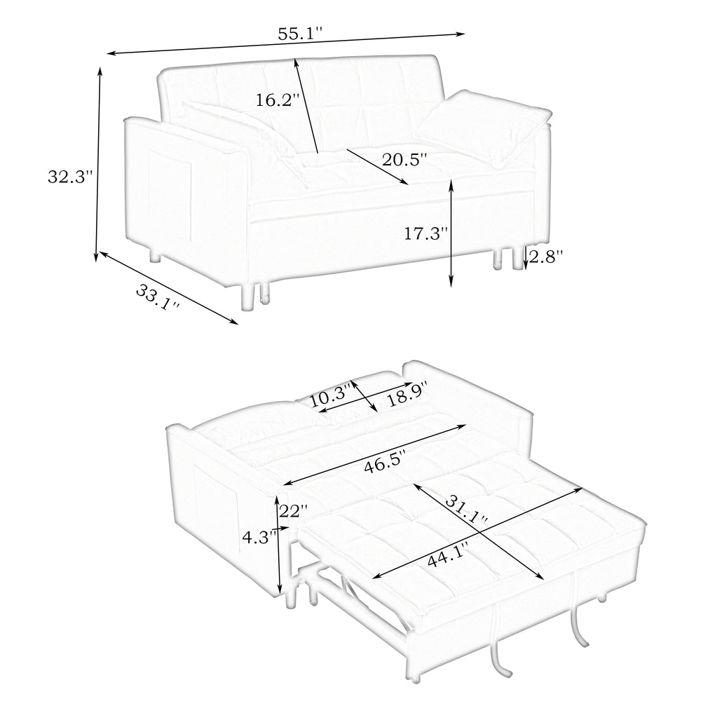 - 3-in-1 Convertible Design: Functions as a loveseat, lounge chair, and pullout sleeper sofa.