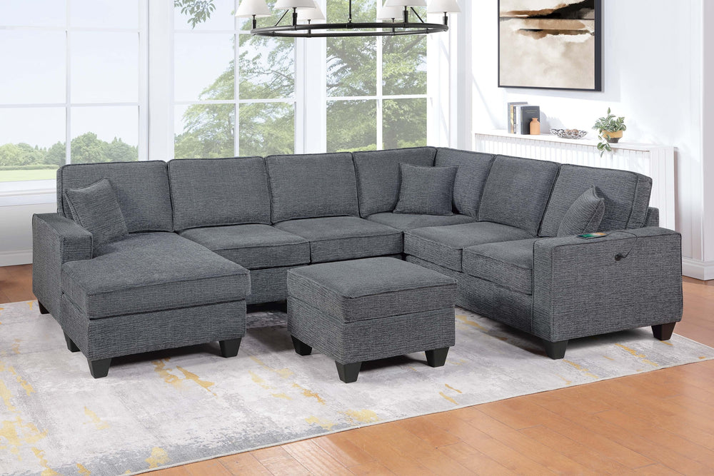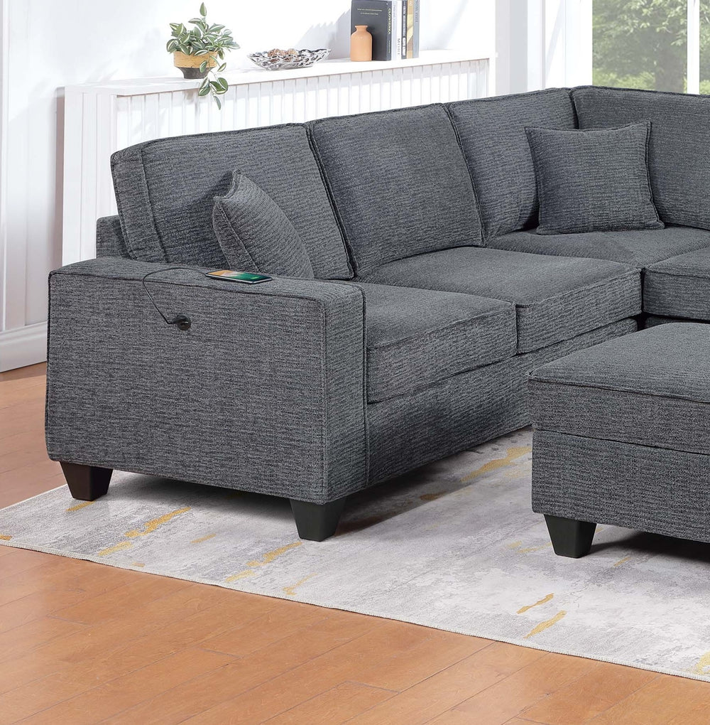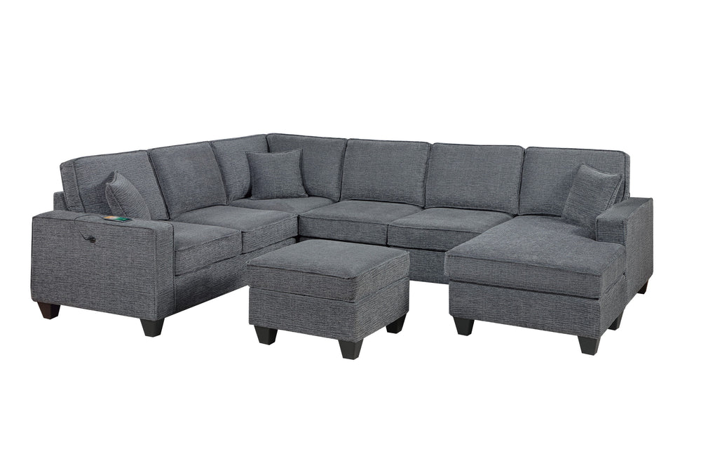 Elevate your living room with this stylish 5-piece sectional set, designed to blend comfort and functionality seamlessly. Upholstered in soft slate gray chenille, it offers a luxurious texture that invites you to relax for hours. This set includes a Left-Arm Facing Loveseat with convenient USB ports for on-the-go charging, a Right-Arm Facing Loveseat with an extended chaise for maximum lounging, a corner wedge for smooth transitions, an armless chair for flexible seating, and a versatile cocktail ottoman that doubles as a footrest or extra seat. Crafted with foam and spring cushions over sturdy plywood frames, each piece balances support with softness to enhance your primary living space. Its clean lines and contemporary style complement modern décor effortlessly. Whether hosting guests or enjoying quiet downtime, this sectional supports every lifestyle. Simple assembly means you can enjoy your new centerpiece quickly. Create your perfect gathering space and elevate your relaxation today.