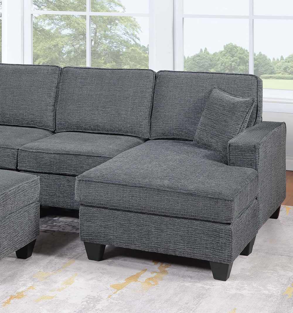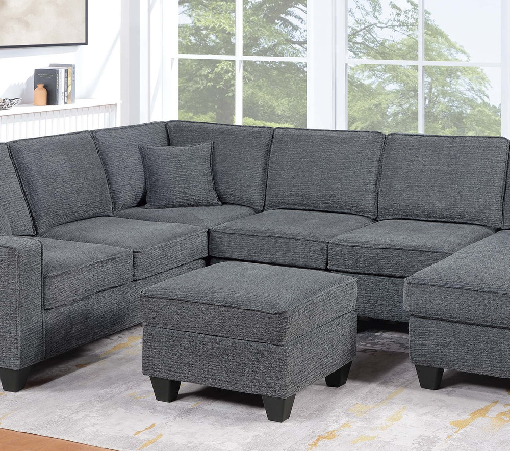 Contemporary 5-Piece Slate Gray Chenille Sectional Set is backordered and will ship as soon as it is back in stock.