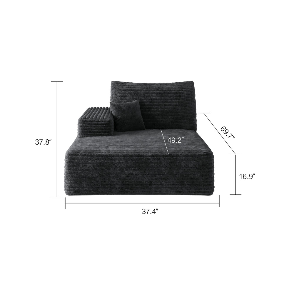 Black Plush Corduroy Modular Chaise Lounge Sofa