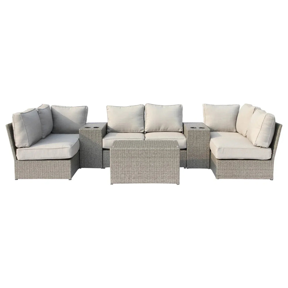 Outdoor Gray HDPE Wicker 9-Piece Seating Group With Cushions - Omega Lifestyles