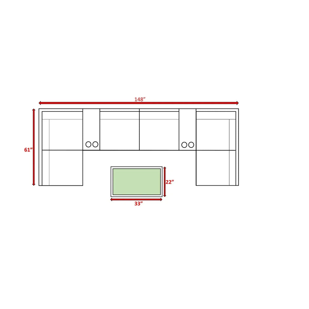 Sofa Dimensions: 26 inches H x 148 inches W x 61 inches D