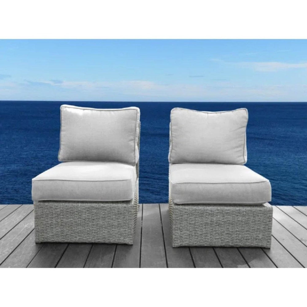 Relax outdoors in style and comfort with this modern patio chair crafted from premium hand-woven resin wicker. Designed to withstand the elements, its durable grey mix wicker and rust-resistant aluminum frame ensure lasting beauty and stability in your garden or patio. The plush foam-filled Olefin cushions offer water and stain resistance, making it easy to maintain while providing a cozy seating experience. Perfectly sized for two, this sectional sofa seating group enhances your outdoor living space with a chic and inviting look. Whether you're enjoying a sunny afternoon or a cool evening, this chair promises both functionality and elegance. Elevate your outdoor relaxation today with this stylish and dependable patio essential.
