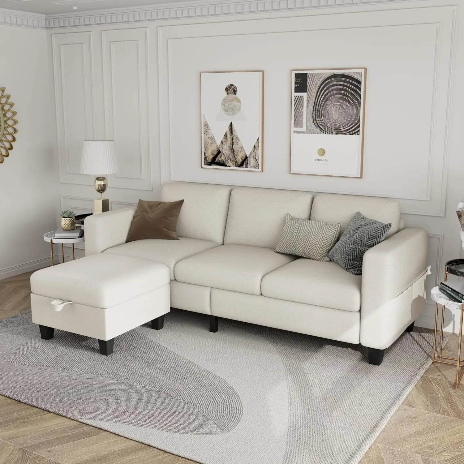 L-Shaped Modular Sectional Sofa With Storage - Beige-linen / United States is backordered and will ship as soon as it is back in stock.