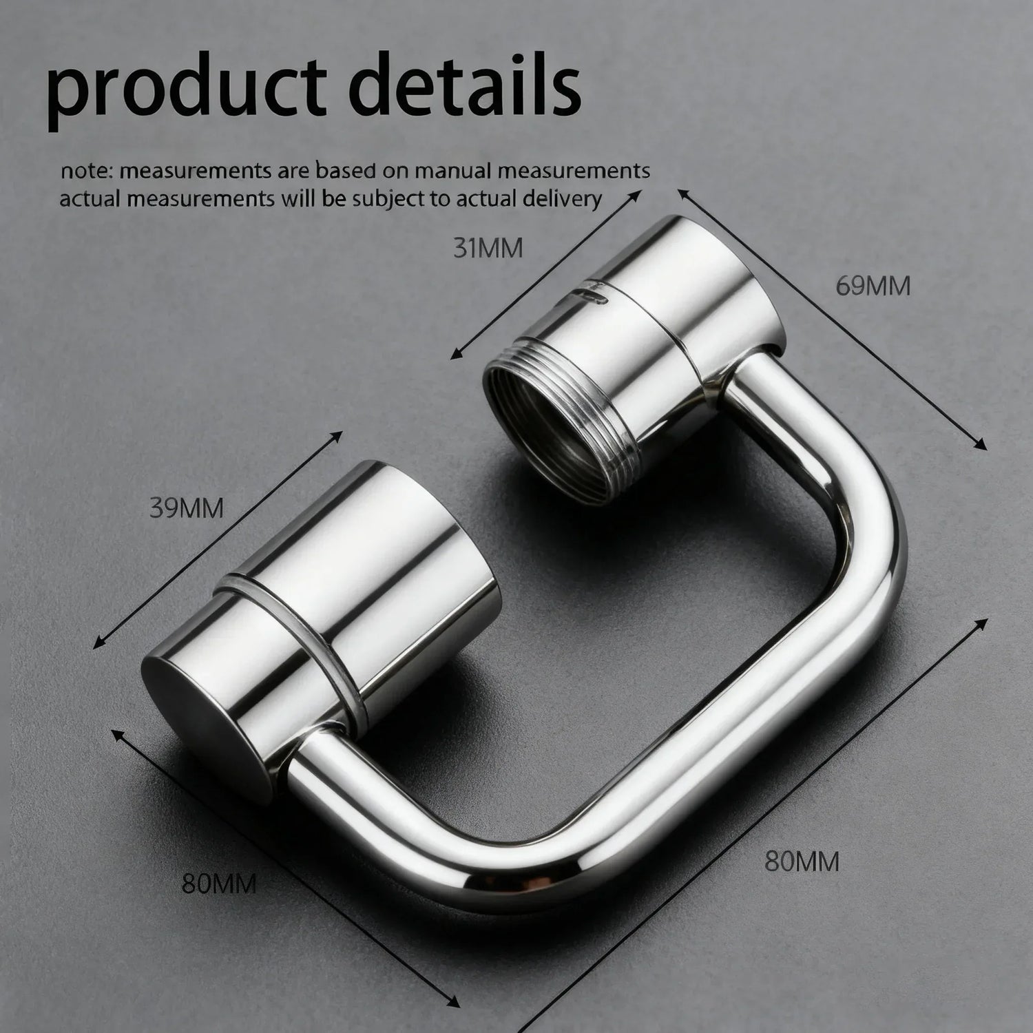 Enhance your faucet’s reach and functionality with this versatile 1080-degree swivel faucet extender. Crafted from durable 304 stainless steel and ABS materials, it effectively filters impurities while resisting rust. Its full 1080° rotation (360° horizontal and 720° vertical) allows you to direct water effortlessly to every corner of your sink, making washing vegetables, cleaning dishes, or rinsing face easier than ever. Featuring dual flow modes—a gentle bubble stream for delicate tasks and a powerful spray for heavy cleaning—this faucet extender saves water and prevents splashes, keeping your countertops clean. Designed for universal fitment on most 22mm and 24mm threaded faucets, installation is simple with included adapters and tools. Upgrade your kitchen or bathroom faucet today for a more efficient and splash-free water experience.