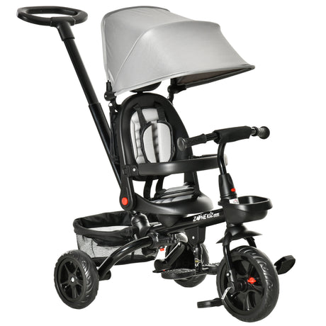 4-In-1 Adjustable Grey Baby Tricycle With Safety Features