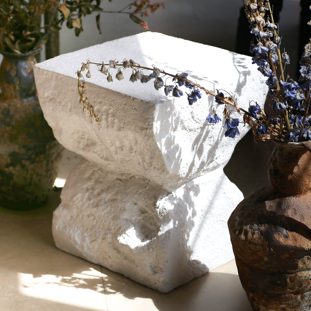 - Modern Minimalist Design: Clean white cube shape with matte finish and subtle organic texture.