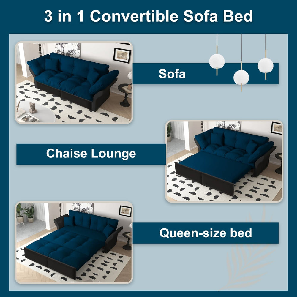 3-in-1 convertible sleeper sofa bed with soft velvet upholstery and high-density sponge offers comfortable seating and restful sleep. Features sturdy steel frame, removable cushions, and quick transition from loveseat to chaise or queen-size bed, ideal for living rooms and guest spaces.