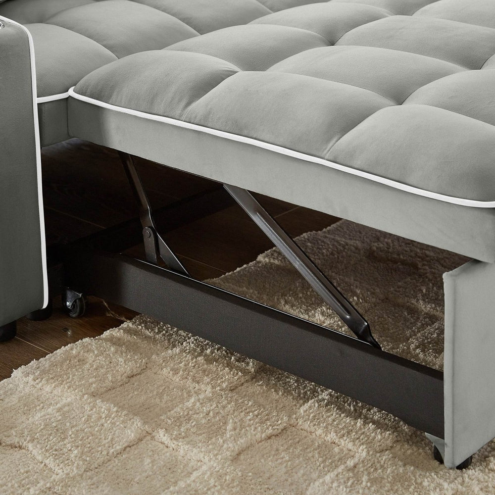 This versatile gray loveseat features a 3-in-1 convertible design, transforming into a chaise lounge or sleeper bed with adjustable backrest angles for customized comfort. Crafted with durable wood and metal frame, foam cushioning, and soft velvet upholstery, it suits small spaces and everyday relaxation.