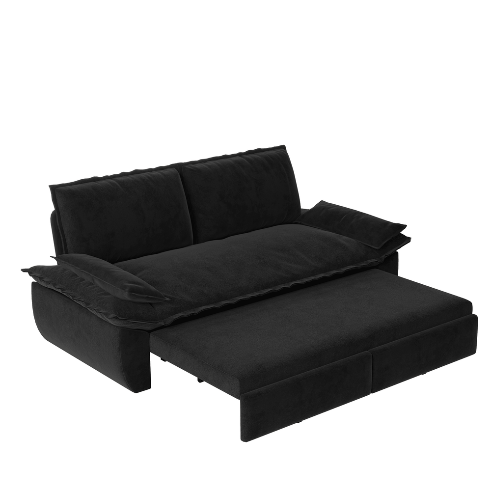 This multifunctional velvet loveseat transforms effortlessly to fit your living space and lifestyle. Enjoy plush, high-density sponge cushioning wrapped in soft, breathable velvet upholstery that provides superior comfort whether you're sitting or sleeping. The innovative pull-out design features two length options; partially extended it becomes a chic chaise lounge, perfect for relaxing or reading, and fully pulled out it converts into a spacious Queen-size sleeper bed measuring 60.6" W x 80.7" D x 12.2" H. Built on a sturdy iron and plywood frame with reinforced steel tubing and stabilizing legs, this sofa ensures lasting durability and stability for everyday use. Ideal for living rooms, bedrooms, or guest spaces, it blends modern style with space-saving convenience. Assembly is quick and straightforward, so you can elevate your home comfort in minutes. Choose from multiple colors including Black, Beige, Grey, Pink, Green, and Blue to complement your décor. Elevate your seating and sleeping experience today.
