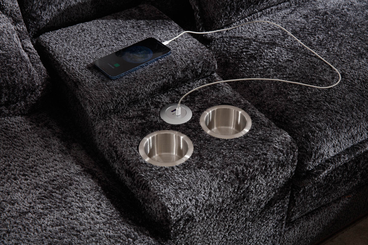 • Built-In Console: Includes storage, cup holders, and dual USB ports for convenience.