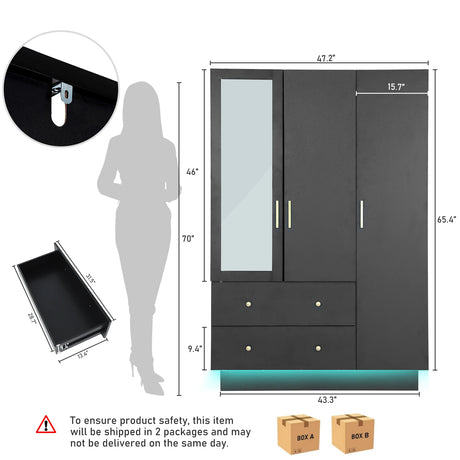 75-Inch Farmhouse LED 2-Door Armoire Wardrobe Closet
