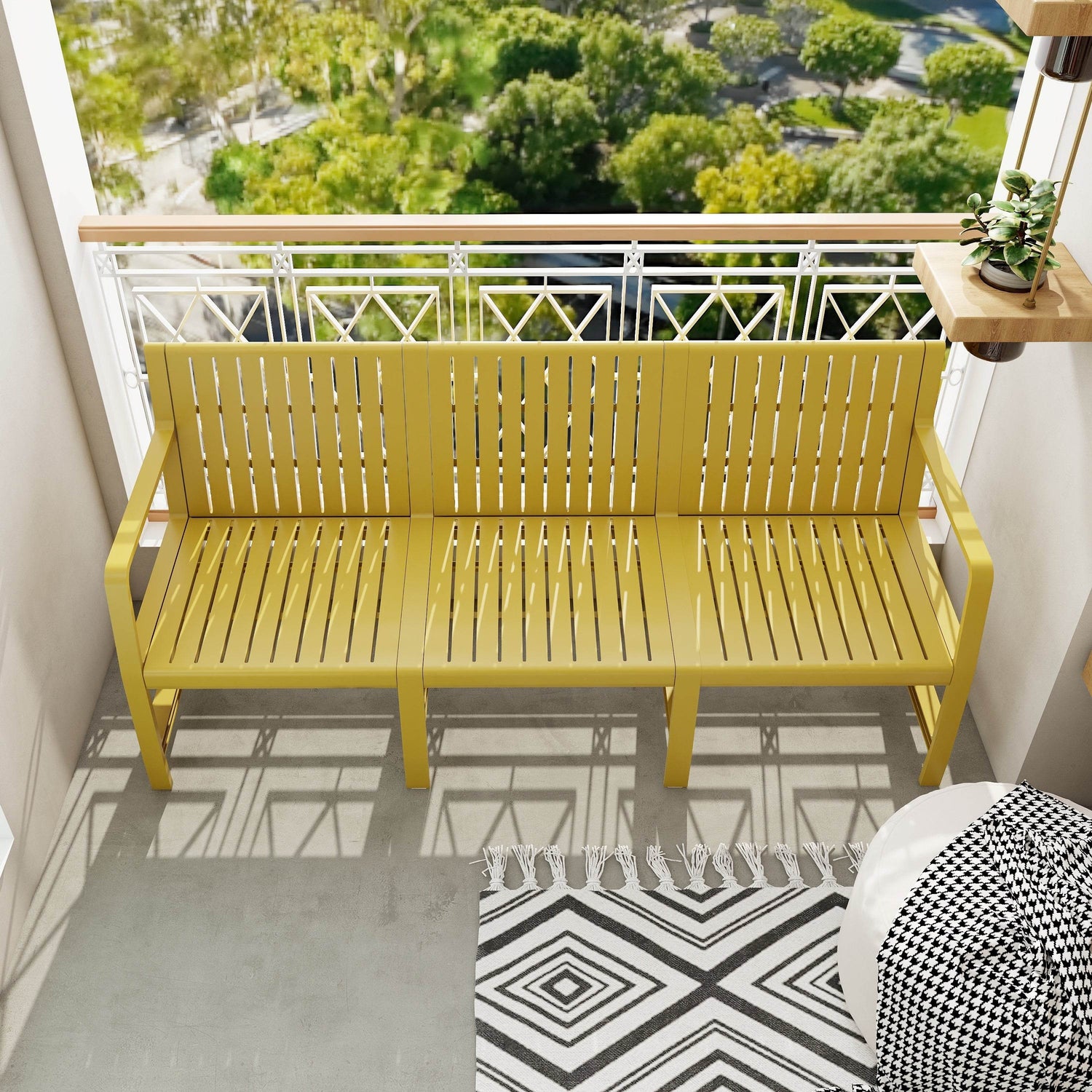 Create the perfect indoor or outdoor conversation space with this vibrant yellow 3-seater sofa crafted from premium polypropylene (PP) material. Designed for both durability and style, its weather-resistant construction withstands rain, UV rays, and everyday wear, keeping your patio, balcony, or living area fresh and inviting. The breathable slatted design enhances airflow for all-day comfort, while deep seating encourages long, relaxing chats or leisurely reading. Despite its sturdy build supporting over 260 lbs per seat, this sofa remains lightweight and easy to move. Plus, assembly is a breeze—complete your backyard oasis in under 10 minutes with clear, guided instructions and all necessary tools included. Elevate your relaxation today with this stylish, low-maintenance patio essential.