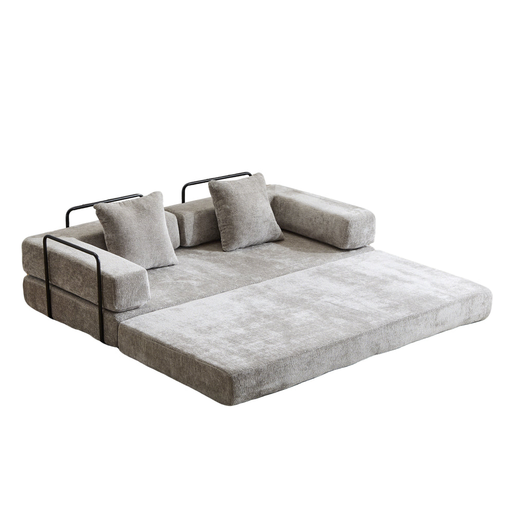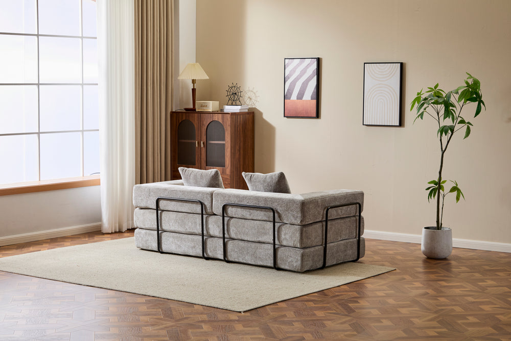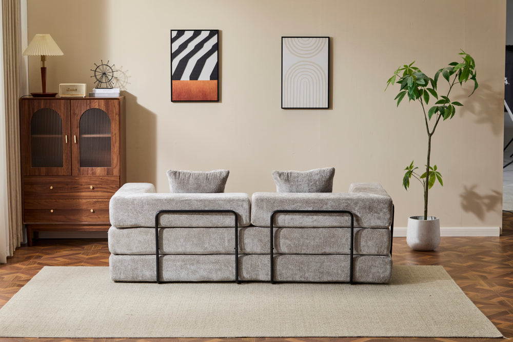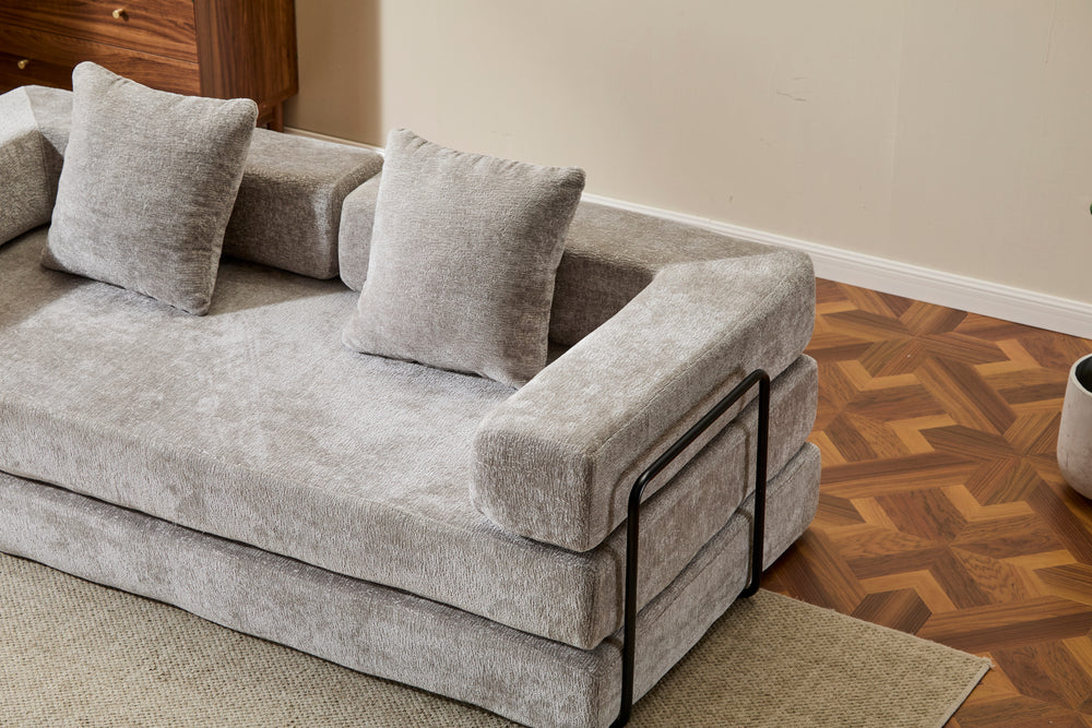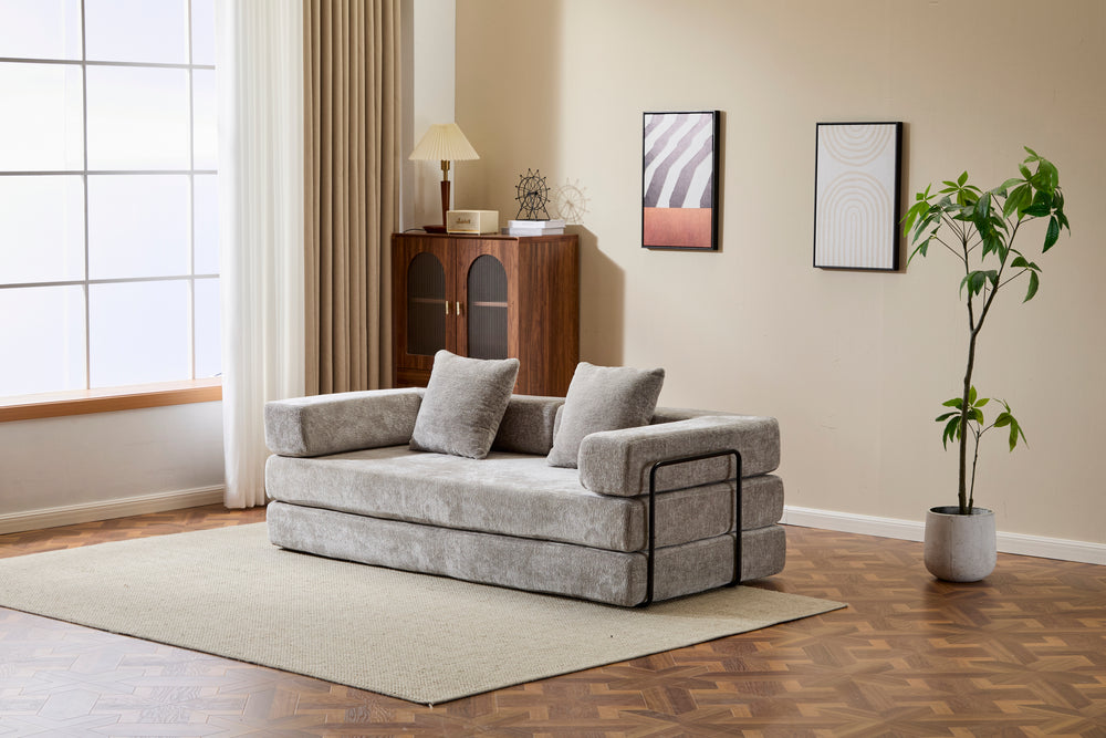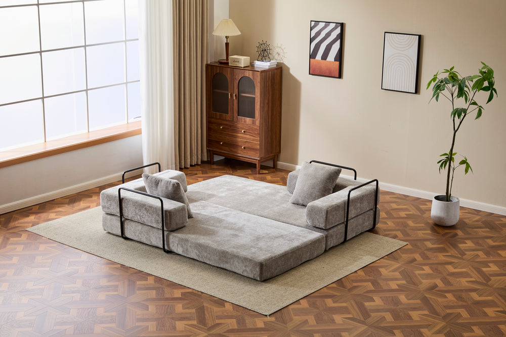 Upgrade your living space with this multi-functional floor couch that effortlessly transforms from a supportive 3-seat sofa into a cozy sleeper bed. Crafted with soft, breathable chenille fabric and filled with high-quality memory foam, it offers plush comfort whether you're lounging, playing games, or hosting overnight guests. Its foldable design with pillow back support and armrests saves space while providing ergonomic support. Perfect for small apartments, bedrooms, or game rooms, this compression sofa combines style and functionality in one compact piece. Easy to clean and requiring no assembly, it expands fully within 72-96 hours for optimal comfort. Elevate your relaxation and seating options today.