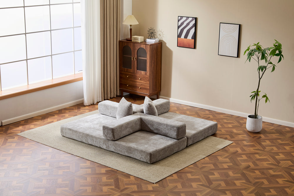 Versatile Comfort with the Light Grey Convertible Floor Couch and Sofa Bed
