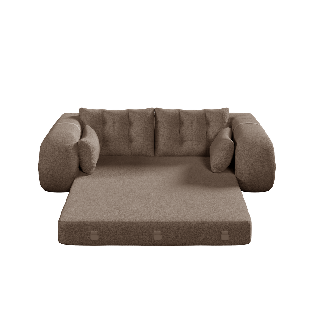 Discover the perfect blend of style, comfort, and functionality with this foldable sofa bed, upholstered in soft, breathable Teddy fabric. Ideal for living rooms, guest rooms, or playrooms, this innovative 3-in-1 design effortlessly transforms from a cozy 2-seat sofa to a reclining lounge chair or a spacious sleeper bed. High-density foam cushions provide superior support and pressure relief, making every moment—from sitting to sleeping—exceptionally comfortable. The included plush pillows and ergonomic headrest and lumbar support enhance your relaxation experience while gentle airflow through the fabric keeps you comfortable. Compact yet generously sized at 78.7 inches long and 43.3 inches wide in sofa form, expanding to a 94.5 by 78.7 inch sleep surface, this sofa bed adapts to your needs and lifestyle. Easy to care for and designed for residential use with no assembly required, it is a stylish, safe, and practical addition to any home. Elevate your comfort and versatility today.
