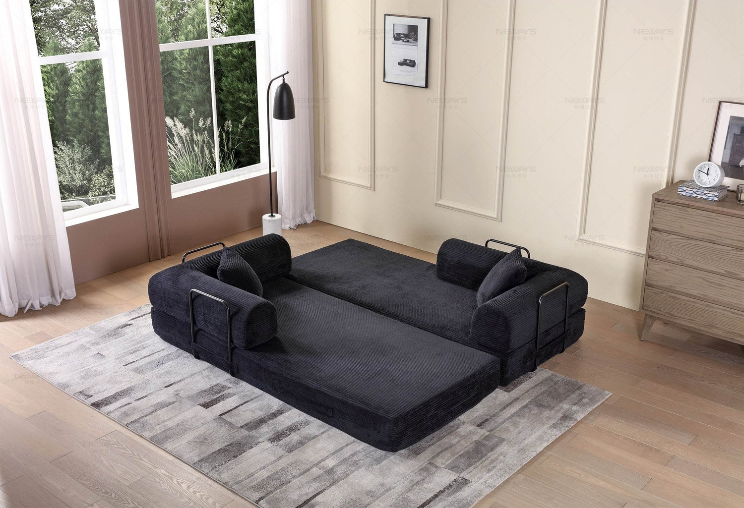 Convertible sofa bed with soft corduroy upholstery and high-density polyurethane foam offers versatile 3-seat comfort and easy fold-out design for lounging or sleeping in living rooms and studios, featuring non-slip base and breathable fabric for enhanced relaxation.