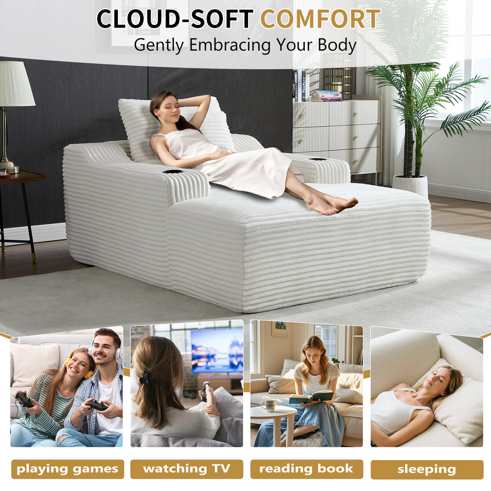 Experience Versatile Comfort with the Oversized Corduroy Chaise Lounge Sofa Bed