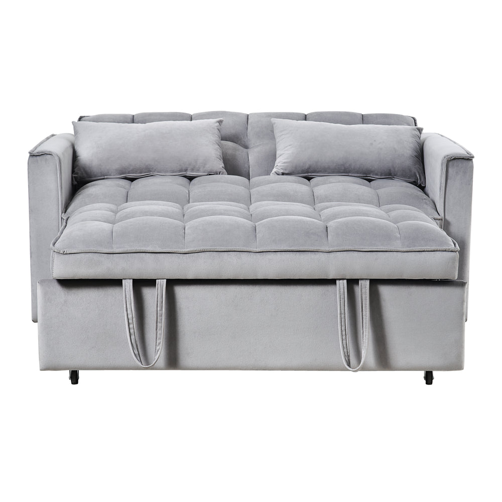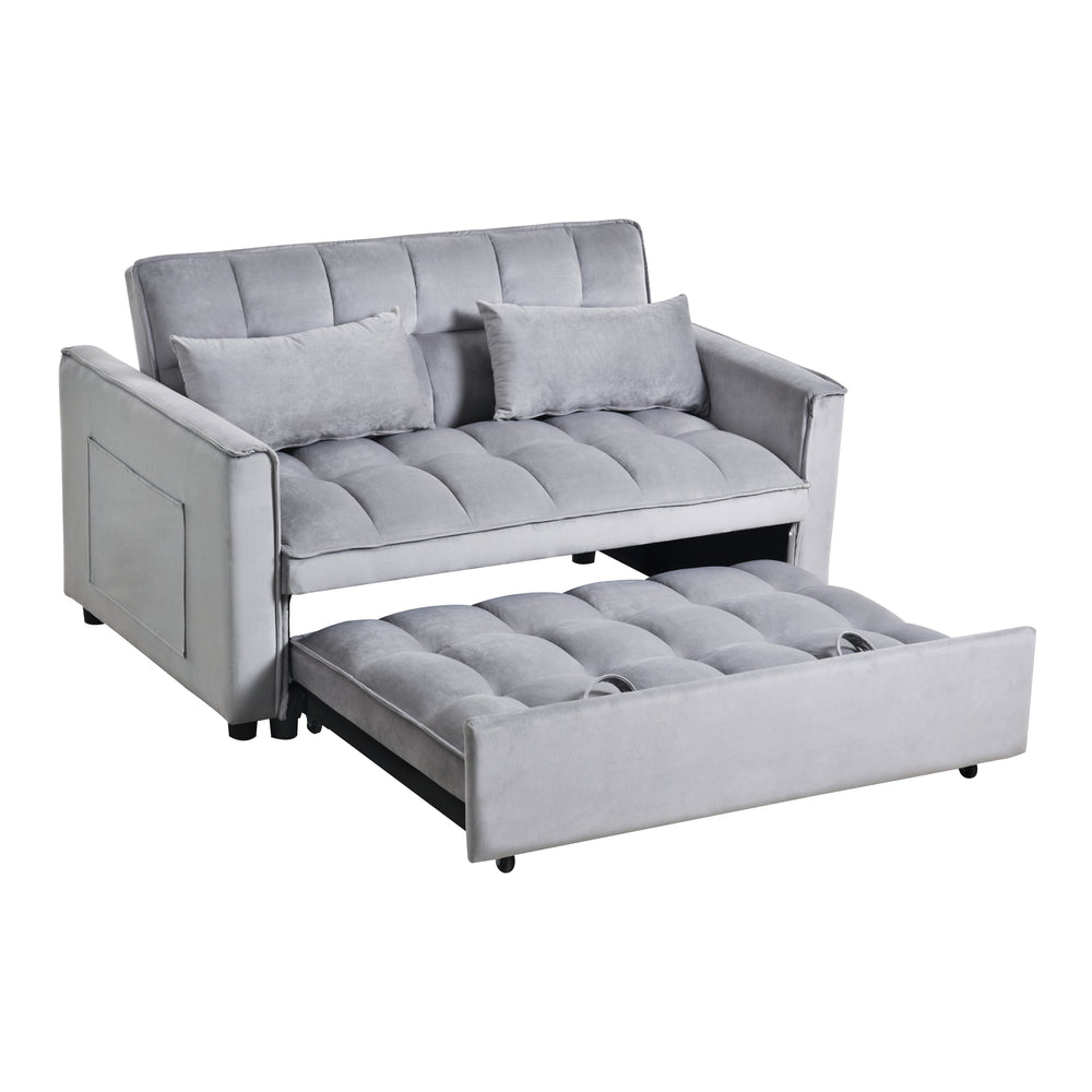 Maximize your living space with this elegant 3-in-1 convertible loveseat sofa bed, crafted with soft cement grey velvet upholstery and filled with responsive memory foam for plush comfort. Featuring a sturdy oak wood frame and high-density sponge cushions, it offers lasting durability and support for daily use. Easily switch between a cozy two-seat sofa, a reclined lounge with adjustable backrest angles, or a full pull-out bed perfect for overnight guests. Designed specifically for small apartments and offices, this modern Art Deco piece adds style without sacrificing functionality. Built-in side pockets keep essentials close at hand, while the compact design optimizes limited space. Elevate your home comfort and versatility today.