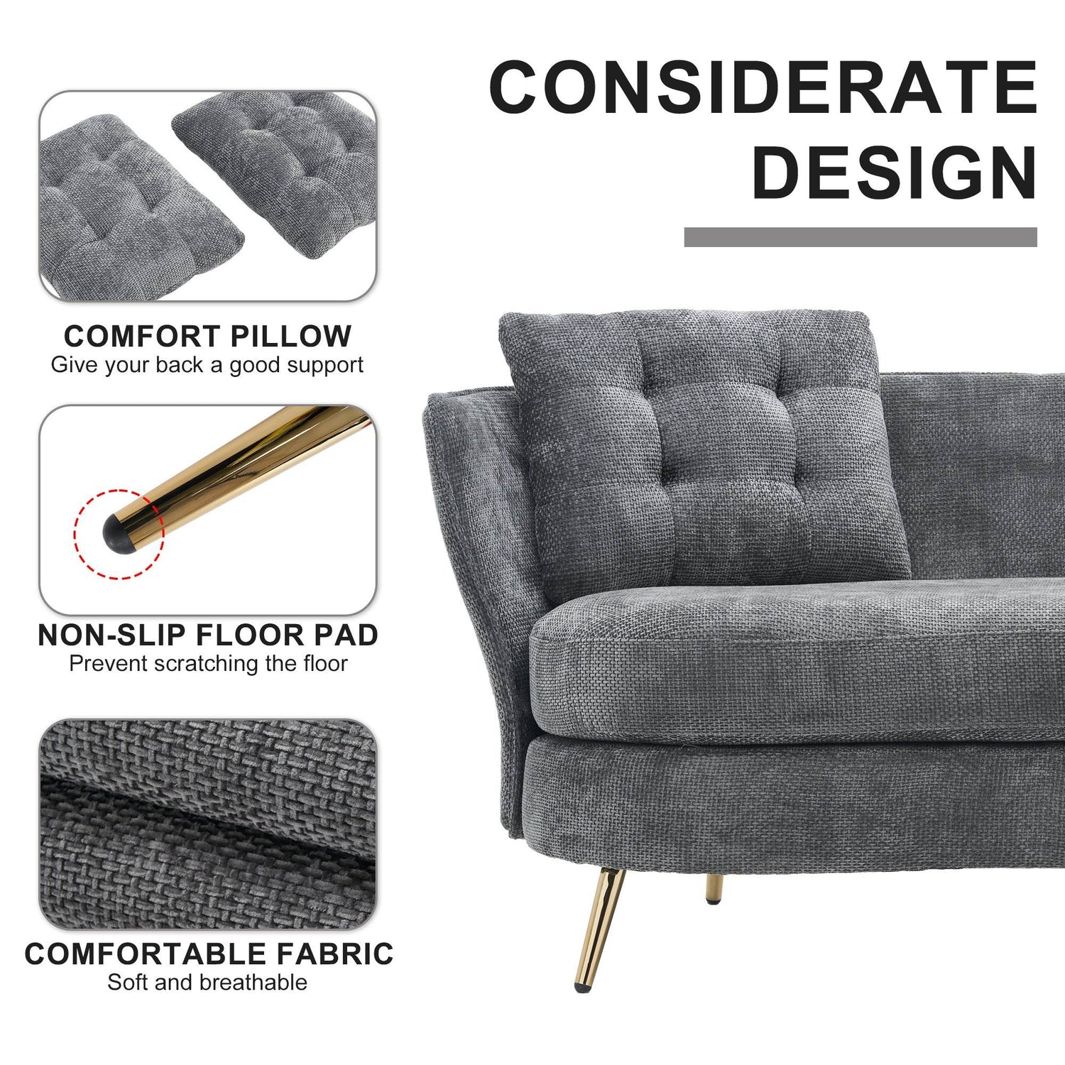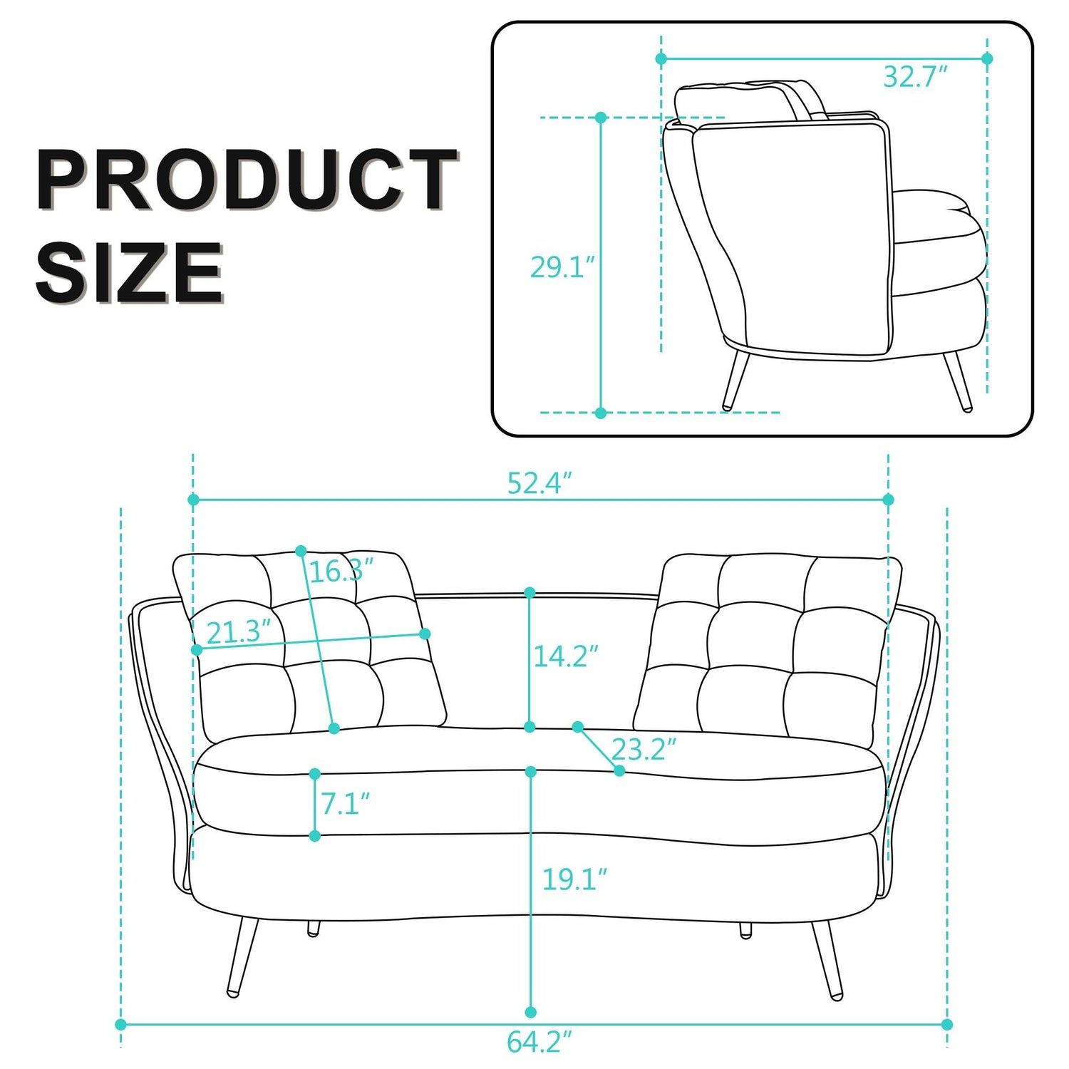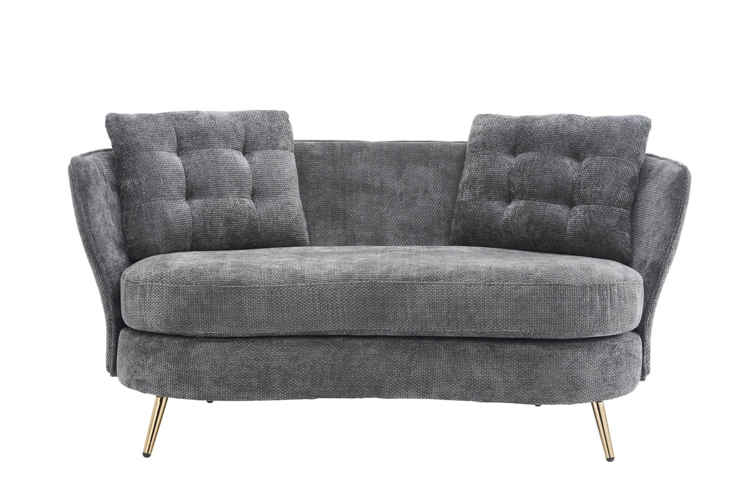 Upgrade your living space with this stylish two-seat loveseat, featuring soft polyester upholstery and a sleek modern design. The plush seat cushions and tight back offer supportive comfort perfect for relaxing, reading, or entertaining guests. Crafted with a sturdy wood frame and golden iron legs, this loveseat combines durability with eye-catching elegance. Its compact 64.2" width (163 cm) makes it ideal for apartments, dorm rooms, or small spaces where every inch counts. Easy to assemble, it’s a practical and chic seating solution that brings both comfort and style to your primary living area. Elevate your cozy corner today with this versatile and inviting loveseat.