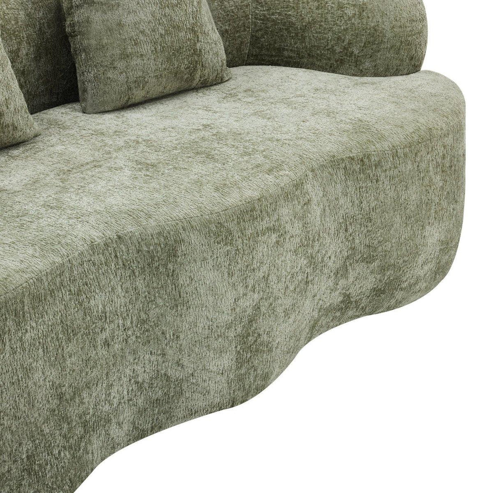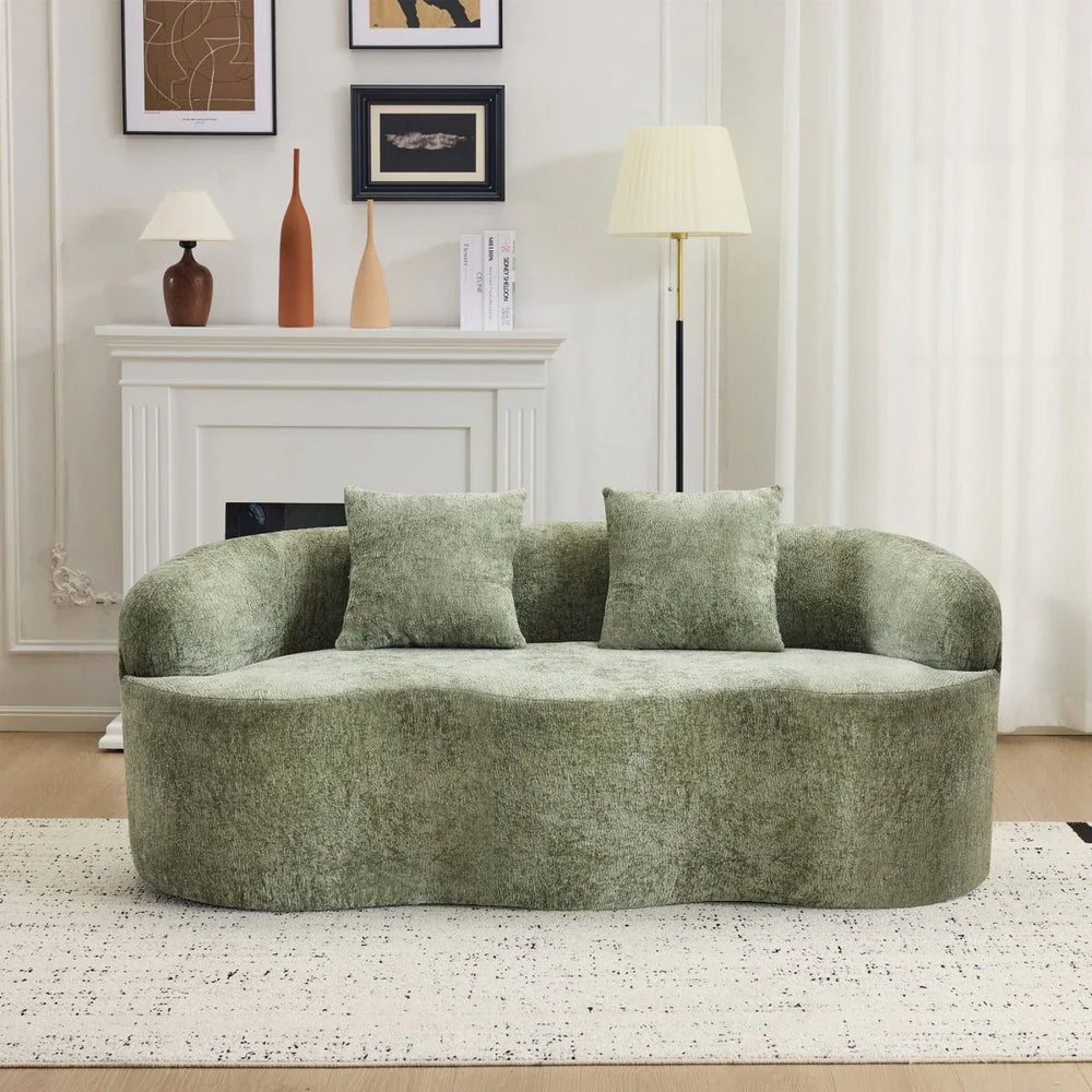 Green Curved Minimalist Foam Spring Loveseat With Pillows