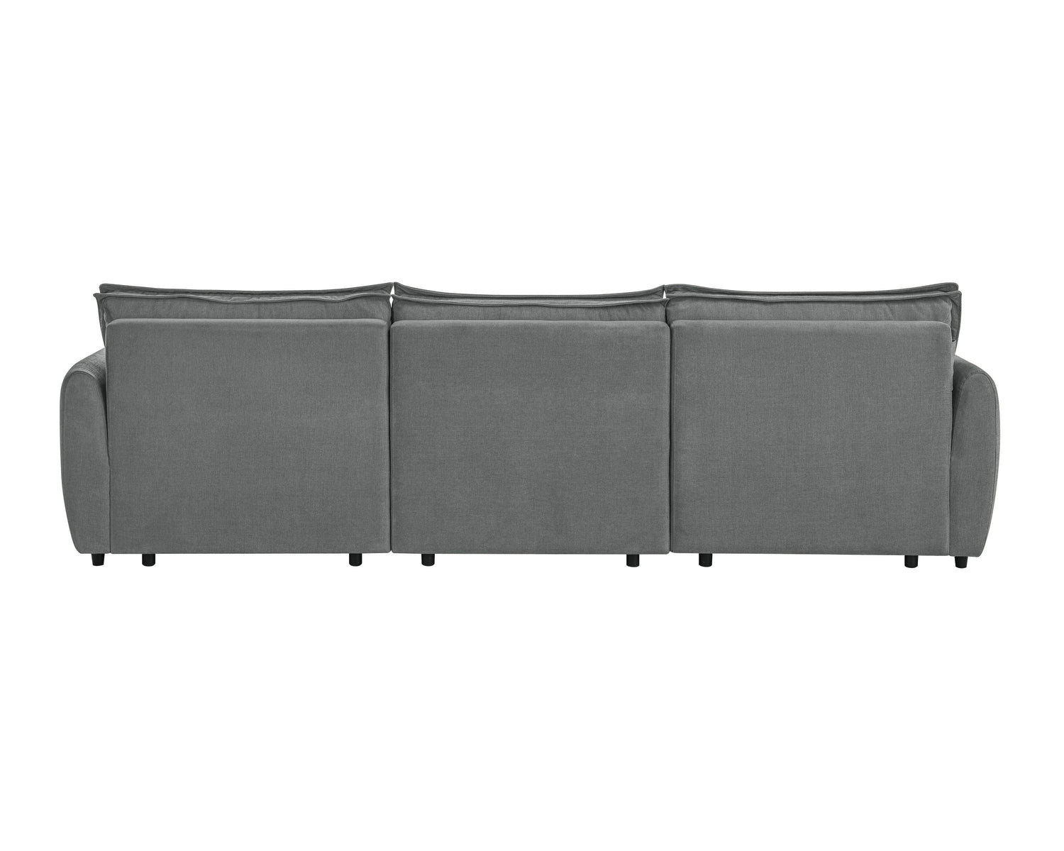 This gray chenille three-seat sofa features tight seat and loose back cushions with full foam padding for comfort. Constructed with a wooden inner frame and synthetic wood legs, it supports 220 lbs per seat and suits modern living rooms.
