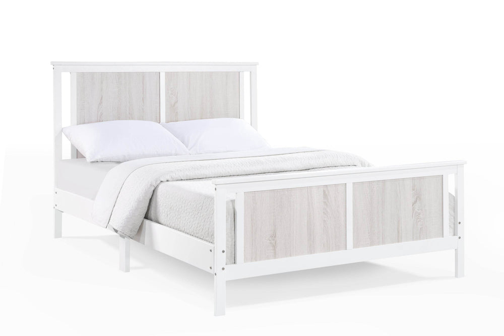 The Connelly Full Bed features solid wood construction with reversible headboard and footboard panels, offering dual-tone finishes and a traditional split panel design. Designed for durability and style, it includes full-size slats and fits standard box springs or bunkie boards.