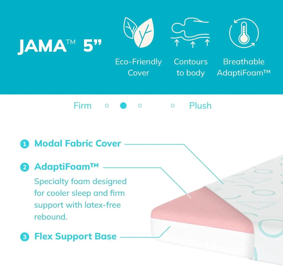 Designed specifically for children’s bunk beds and trundle frames, this 5-inch medium firm mattress offers the perfect blend of support and comfort. Crafted with exclusive memory foams featuring Adaptifoam technology, it promotes breathability and airflow for a cooler sleep environment while contouring gently to your child’s body. The low-profile height enhances safety by reducing the risk of falls, making it ideal for top bunks and compact spaces. Its soft yet durable modal fabric cover, derived from beech-tree pulp, ensures a gentle touch and long-lasting use. Certified by CertiPUR-US and Oeko-Tex Standard 100, this mattress is free from harmful chemicals, providing peace of mind for your family. Elevate your child’s sleep experience with a mattress designed for safety, comfort, and healthy rest.