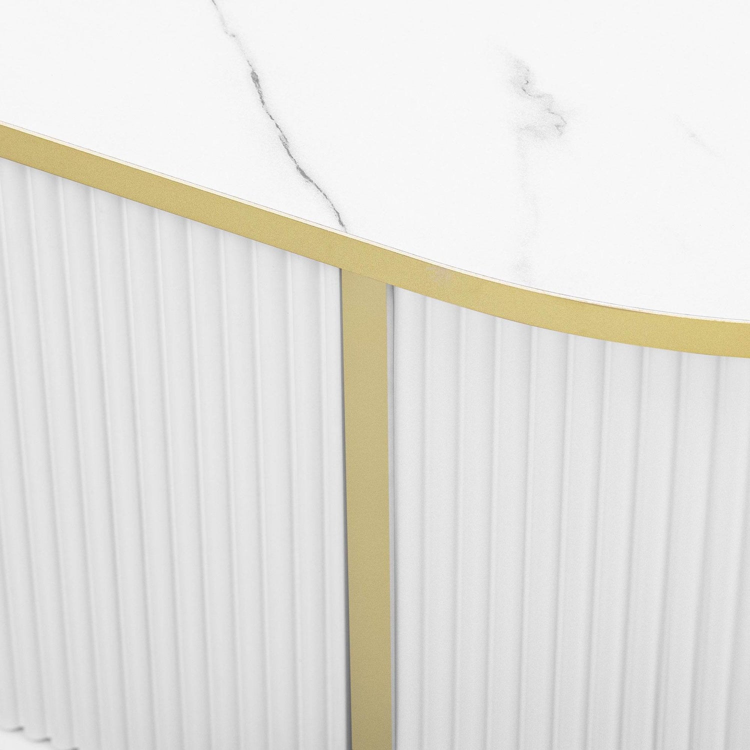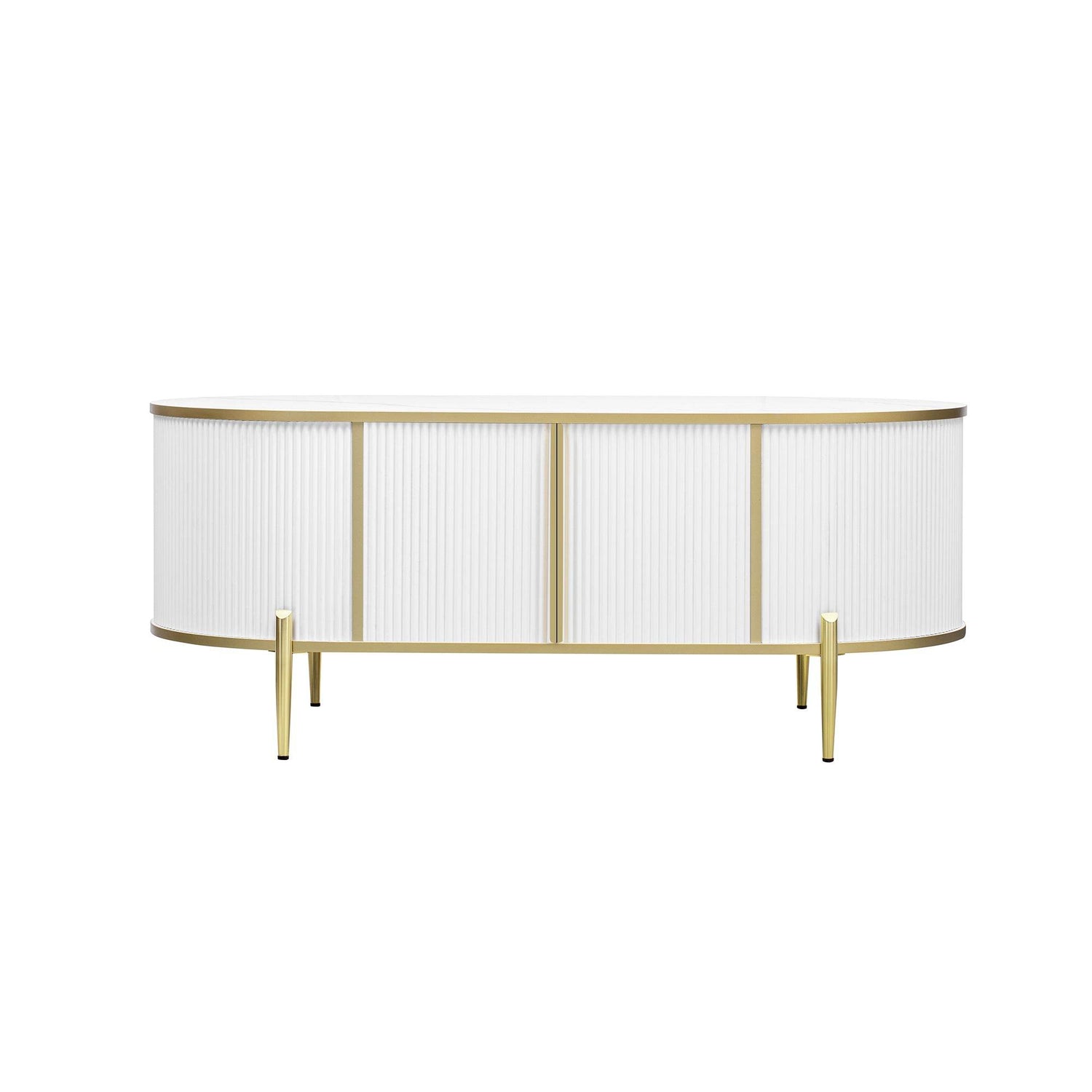 Modern Fluted MDF Coffee Table With Storage Cabinets