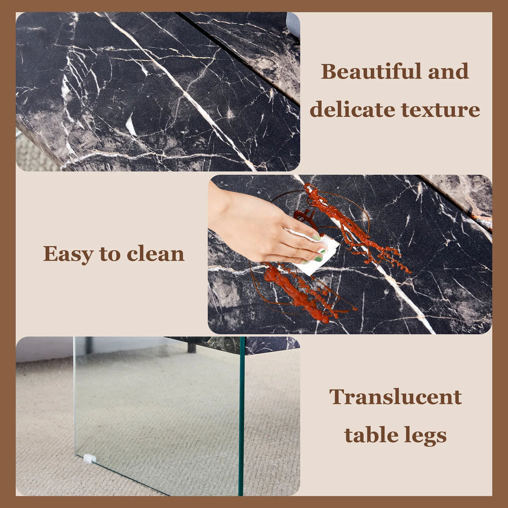Enhance your living room or office with this modern lift-top coffee table designed for versatility and style. Its adjustable top conveniently raises to transform the table into a functional work desk or dining surface, perfect for working from home or casual entertaining. Crafted from durable MDF with a sleek black marble-finish surface, it offers both elegance and practicality. The sturdy tempered glass legs with polished edges provide robust support while adding a contemporary touch to your décor. Featuring a smooth hydraulic lift mechanism, the table reveals a spacious hidden storage compartment beneath, ideal for stashing remotes, magazines, or snacks to keep your space organized and clutter-free. Thoughtful safety elements like non-slip rubber feet and rounded corners ensure stability and peace of mind. With its compact 43.3 by 23.6 inches size and 300-pound weight capacity, this coffee table perfectly balances functionality and sophisticated design. Elevate your home experience today.