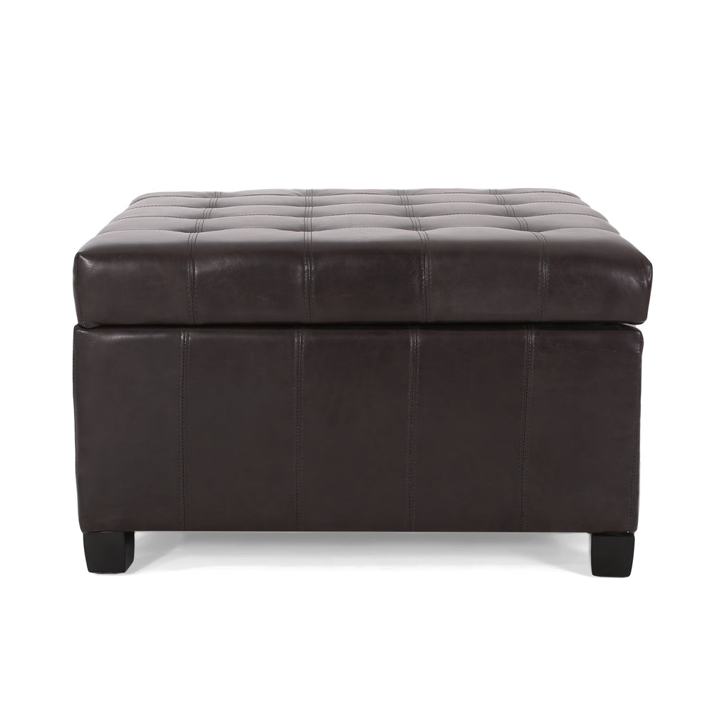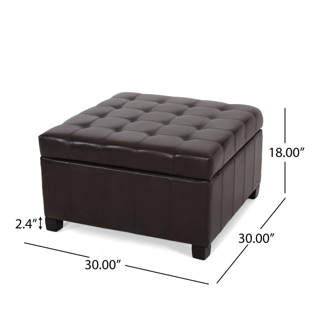 Tufted PU Leather Upholstered Storage Ottoman Brown