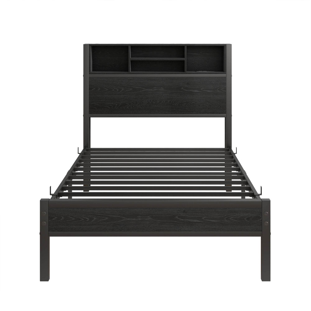 Twin Metal Platform Bed Frame With Storage Headboard Charging Station - Omega Lifestyles